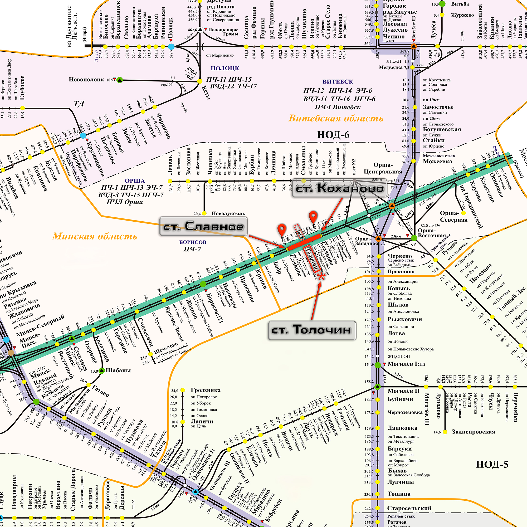 По имеющимся сведениям, в период приблизительно с 01.00 до 03.00 часов ночи на участке от ст. Славное до ст. Коханово на протяжении около 44 километров направления Минск — Орша Минского отделения БЖД полностью останавливалось движение поездов в четном и нечетном направлении.