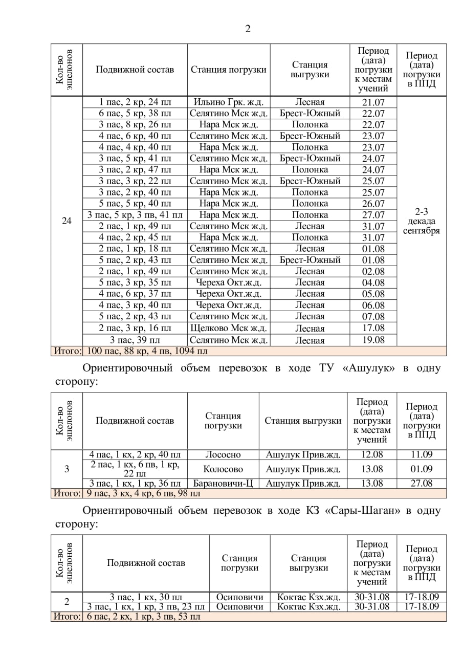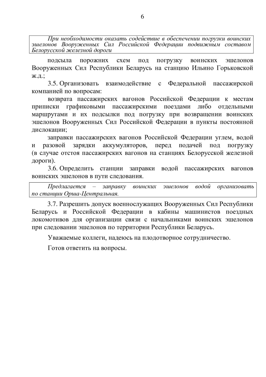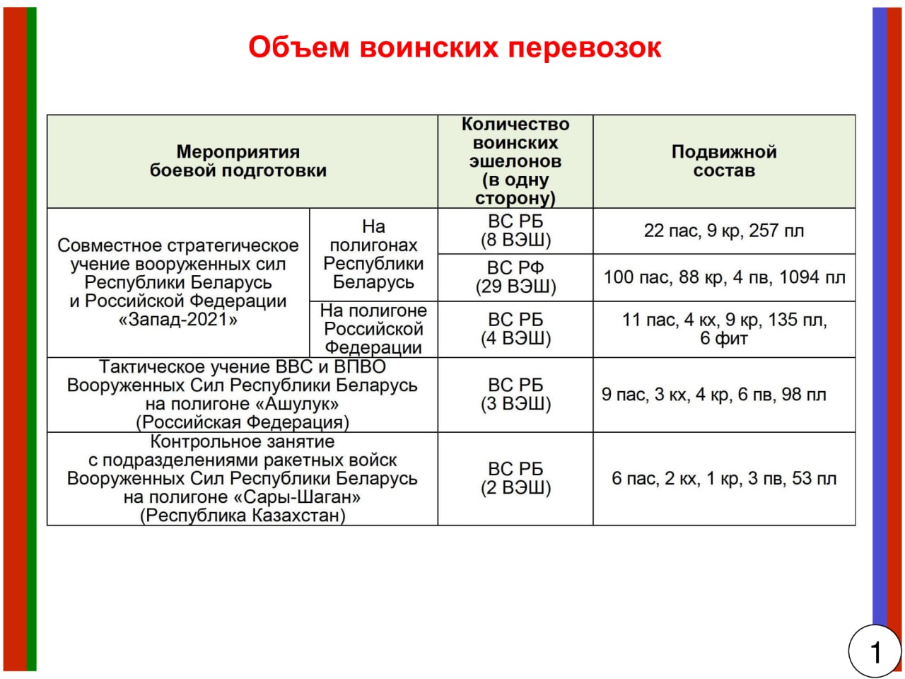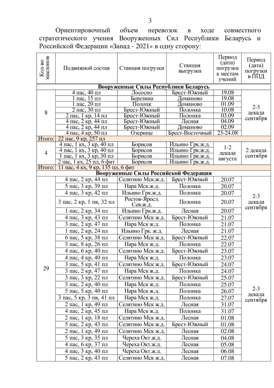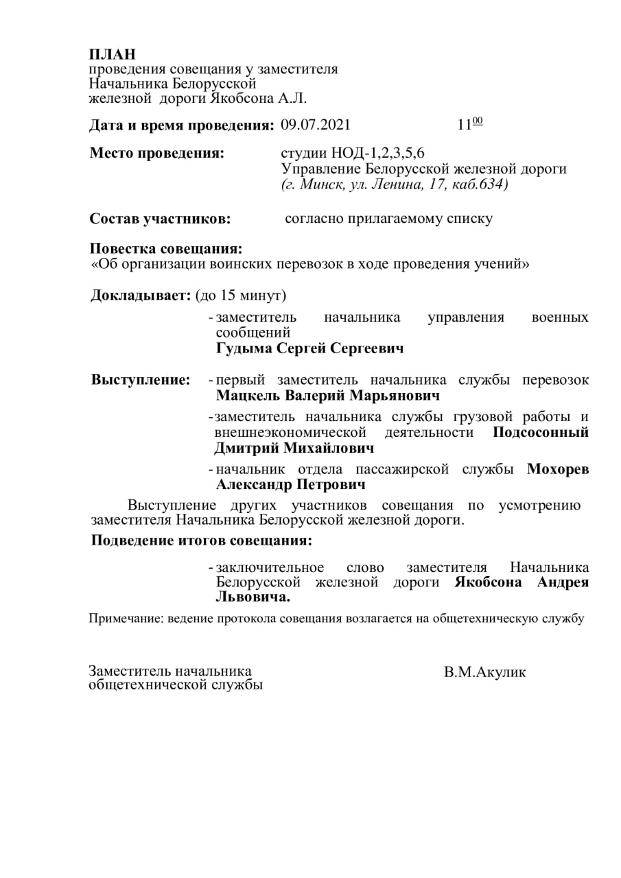 2) Материалы к совещанию у заместителя Начальника Белорусской железной дороги Якобсона Андрея Львовича по вопросу об организации воинских перевозок в ходе проведения учений «Запад — 2021». Предложения в постановляющую часть протокола совещания об организации воинских перевозок в ходе проведения учений: