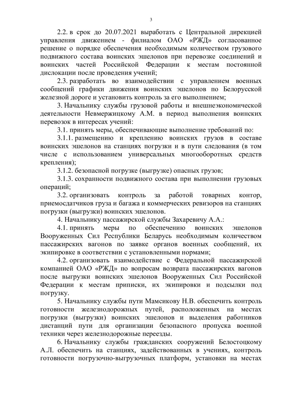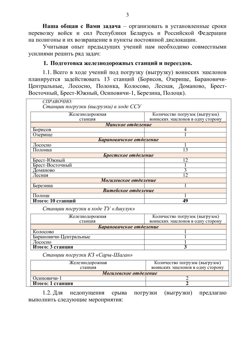 Публикуем некоторые документы о том, как Белорусская железная дорога готовилась к воинским перевозкам в рамках учений «Запад — 2021».