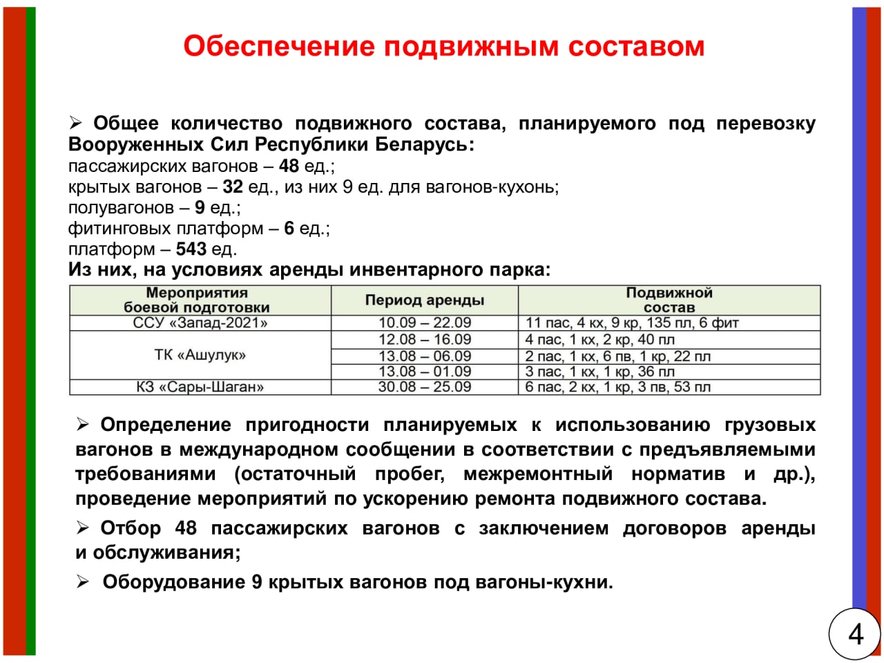 4) План проведения и список участников совещания об организации воинских перевозок в ходе проведения учений «Запад — 2021«: