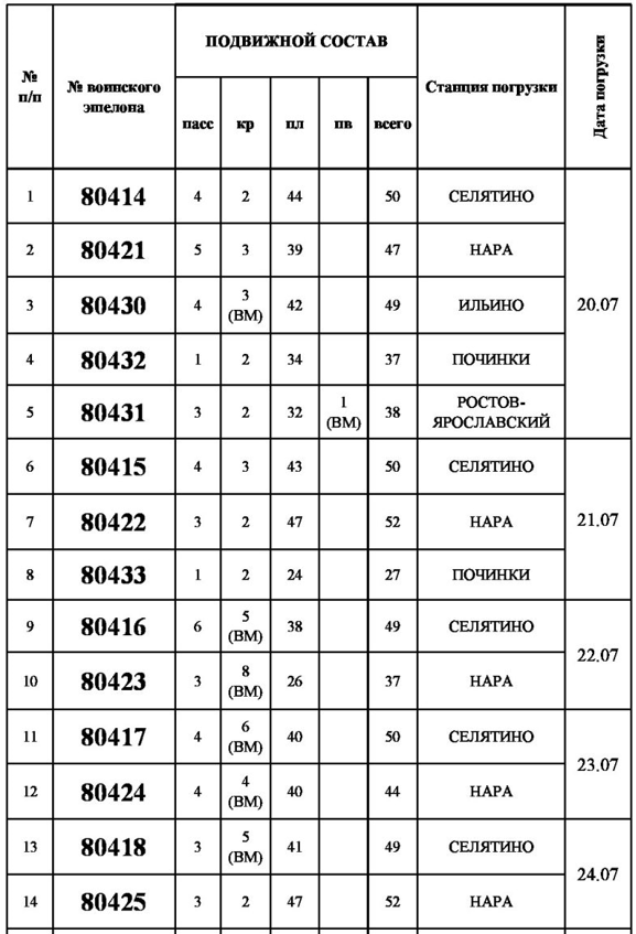 График движения воинских эшелонов (прибытие в Республику Беларусь). Июль-Август 2021 года: